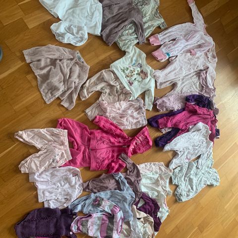 Klærne er pent brukt. Perfekt startpakke til baby eller som tillegg til nyfødtgarderoben.