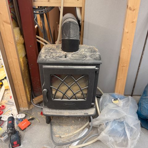 Dovre vedovn i svart utførelse. Ovnen har stor glassdør i front som gir godt innsyn til brennkammeret. Innvendig er den kledd med lys brennplatemateriale. På undersiden er det en askeskuff/luke. Øverst er det røykrørsuttak. Leveres med dokumentasjon og brukerveiledning som vist på bildene.ble så vi valgte en annen model, koster 15299 på obs nå, selges for 10000.-