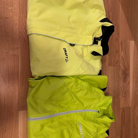 Sykkelklær, 4 plagg til herre selges. Inneholder 2 bukser med seler (ene i str. L andre i str. XL). 1 t-skjorte og 1 jakke (begge i XL).