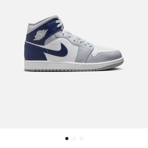 Nike Air Jordan 1 Mid sneakers i størrelse 44,5. Modellen har overdel i en kombinasjon av glatt materiale og semsket materiale i hvit og lys grå farge. Klassisk snøring foran og polstret pløse og krage for økt komfort. Yttersåle i gummi med mønster for grep. Passer som fritidssko og hverdagsbruk.