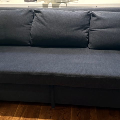Sofaen blir enkelt til en seng, str. 140 x 200 cm. når du tar bort putene og løfter ut understellet.