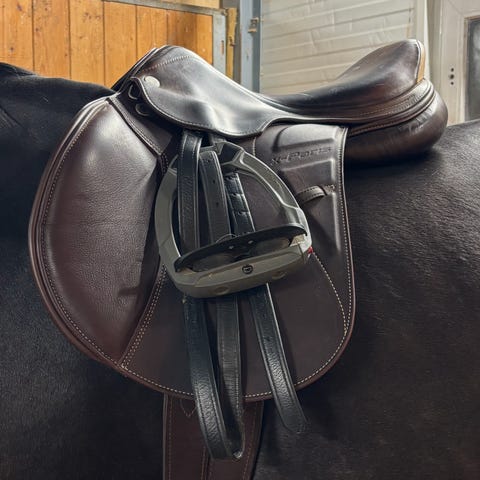 Kjøpte den helt ny fra Dina bb horses i vår 2025, brukt da fram til november. Er noen merker helt nederst på gjordestroppene. men funker optimalt. Sist sjekket og endret i oktober av smith saddle company.