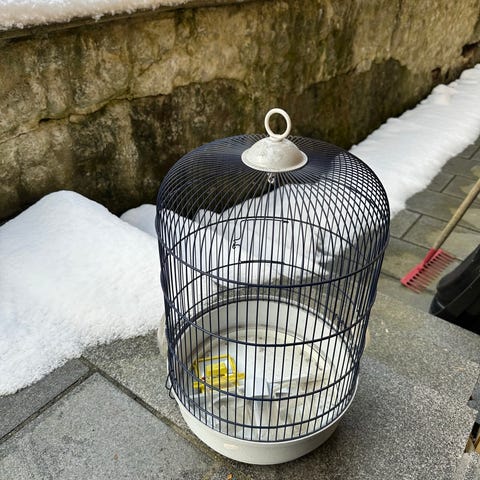 Fuglebur i metall med plastbunn.