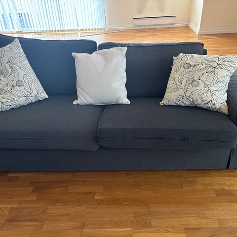 Gratis sofa for norske studenter. Helt ok og fin sofa vi har brukt på tv stua. Med seselong på begge sider er den nærmest 4 meter. Alle andre kr 4 tusen