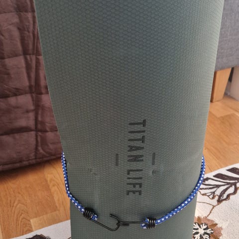 Svart treningsmatte egnet til hjemmetrening, styrketrening, yoga eller pilates. Matten har rillet overflate som gir bedre friksjon mot underlaget. Passer til bruk på gulv innendørs. Det er merke/slitasje på overflaten pga soleksponering (glemte å ta inn matten ved husvask). Det vil ikke være synlig ved bruk. Kan hentes på Frogner i Lillestrøm kommune eller leveres i Oslo etter avtale (fortrinnsvis Grünerløkka/Sofienberg). Pris 250,-