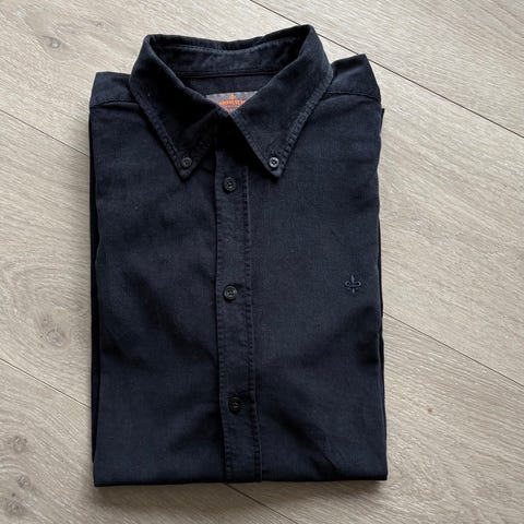 Morris skjorte for herre i størrelse L (41/42). Skjorten er burgunder og laget av bomull. Den har lange ermer, krage og knappelukking foran. Passer til bruk i hverdagen eller til mer formelle anledninger der en enkel bomullsskjorte er ønsket.