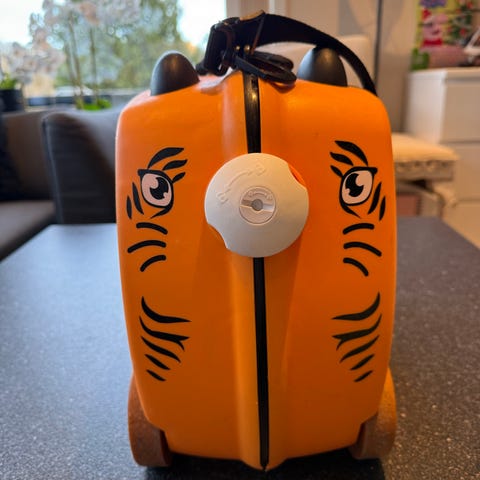 Artig barnekoffert som barnet kan dra sjølv, eller som barnet kan sitte på, og ein vaksen kan dra.