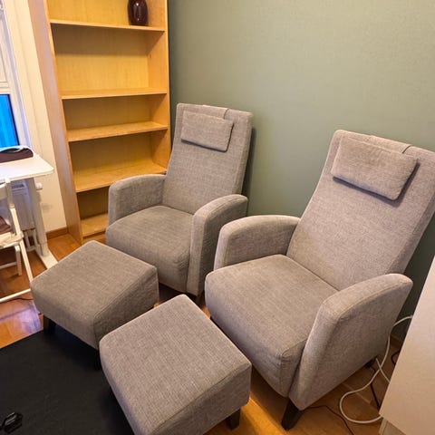 Veldig gode å sitte i – passer fint som lesestoler, kontorstoler eller ekstra stoler i stue.