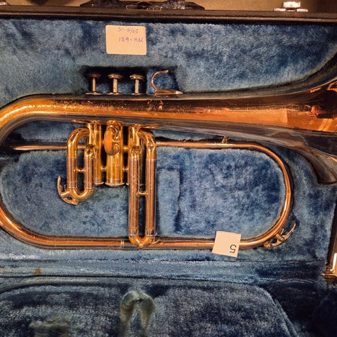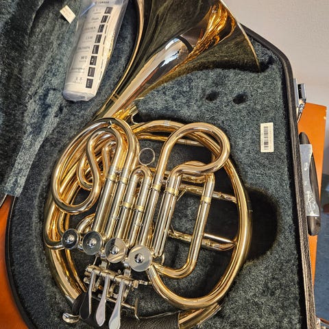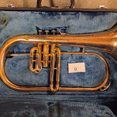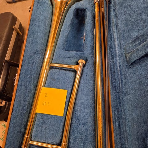 Uten munnstykke. Bruksslitasje. Selges som den er. Instrumentkasse.