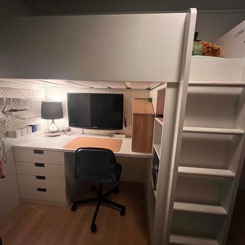 IKEA loftseng 90x200 med skrivepult og oppbevaring