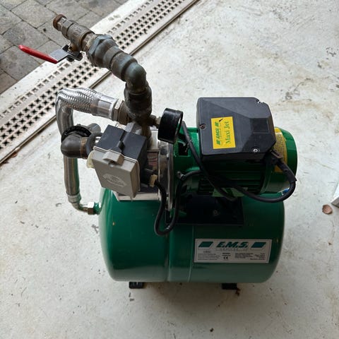 Piusi elektrisk pumpe. Industriell pumpeenhet med elektrisk motor og metallhus. Egnet for pumping og overføring av væsker der elektrisk drift er ønskelig. Flere pumper vises på bildene, med tilkoblinger for rør eller slanger i metall. Spesifikke tekniske data som effekt, spenning og kapasitet fremgår av typeskiltet på pumpene og bør kontrolleres ved behov.