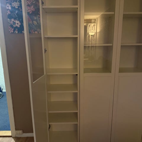Selger dette skapet med glasshyller grunnet flytting