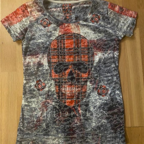 Nydelig stretchy Philipp Plein t-skjorte med perler. Str S.