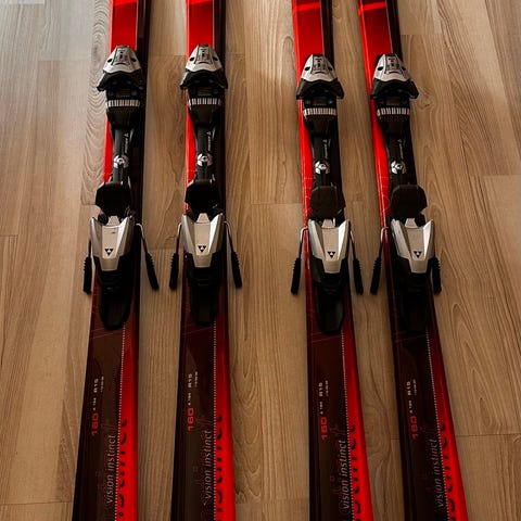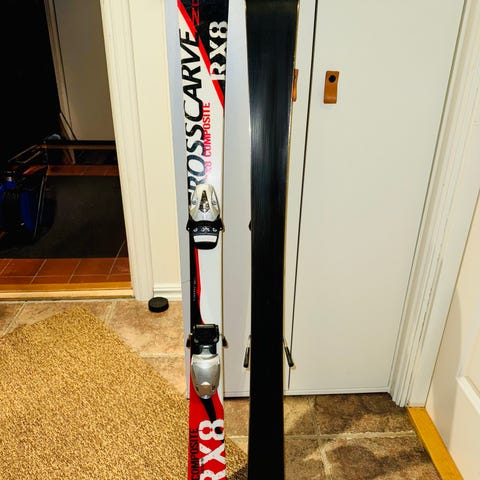 Fischer RX Heat alpinski med bindinger i lengde 165 cm. Skiene har svart og blå design med integrerte bindinger som kan justeres. På bildene følger det også med et par svarte skistaver av merket Pure. Egnet til bruk i alpinbakke for voksne eller større ungdommer som ønsker carvingski til preparerte løyper.