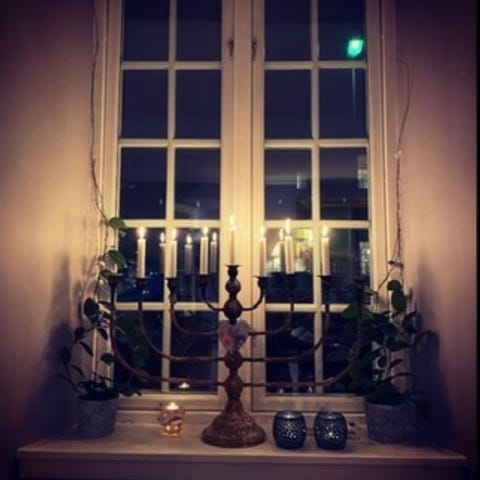 En solid lysestake som veier rett over 2,6 kg. Høyde 36 cm, bredde 33 cm.