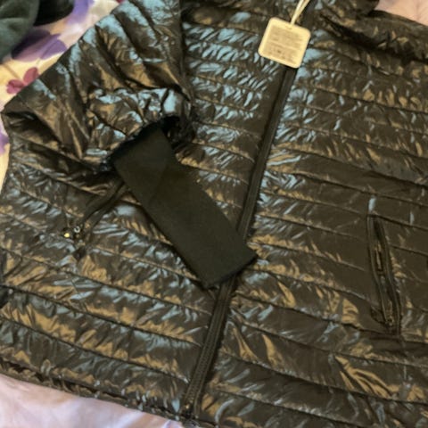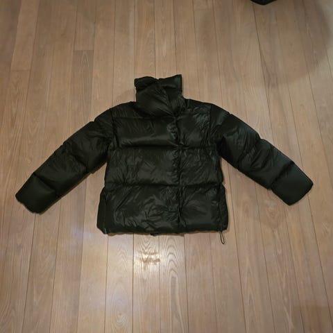 Nelly vinterjakke for dame i størrelse L. Jakken er grønn og har en blank overflate. Den er laget i polyester og har vattert, quiltet design som gir god isolasjon. Modellen har høy krage og hette, samt glidelåslukking foran. Egnet som ytterjakke i den kaldere sesongen.