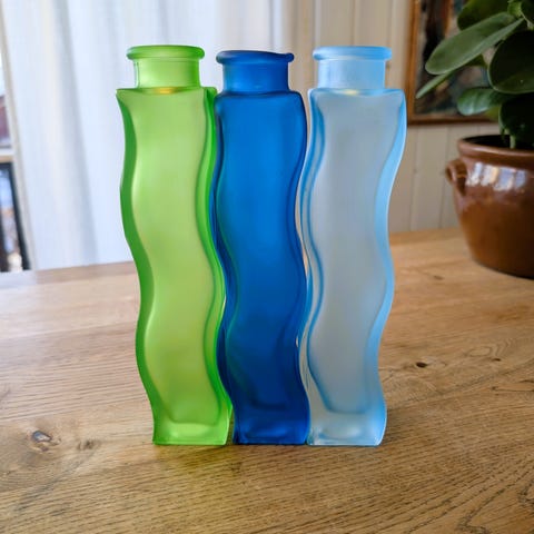 #Glassvase #Blå #Vase #Dekor #Interiør #Pynt #Skulpturell #Gjenbruk #Secondhand #Hyllepynt #Stue #HomeDecor #Nordisk #Gave #Frosta #Frostet #Flaske #Vintage