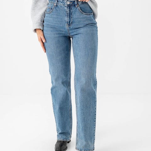 Pent brukt Levi’s Ribcage Straight i klassisk blå denim. Modellen har ekstra høyt liv og rette ben, og dette er ankellengde (L27). En tidløs og flatterende passform.