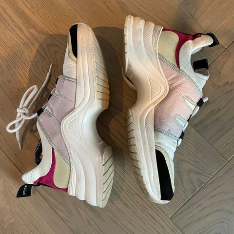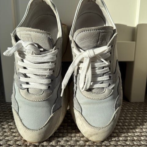 Nude of Scandinavia sneakers/joggesko i størrelse 37. Modellen har grønn overdel med tydelig NUDE-logo på siden og hvit, kraftig såle. Skoene har glidelås foran for enkel av- og påtaking. Passer til hverdagsbruk og fritid.