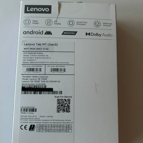 Lenovo nettbrett med 32 GB intern lagring. Nettbrettet har berøringsskjerm og bakside i metallfinish. Det følger med et deksel med frontlokk som beskytter skjermen når nettbrettet ikke er i bruk. Egnet til generell bruk som surfing, medieavspilling og enkle apper.
