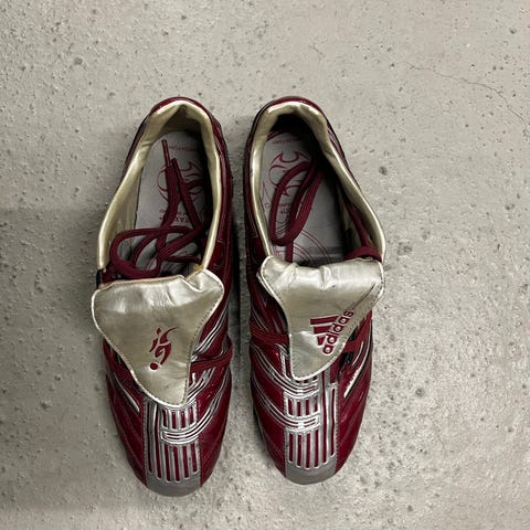 Adidas fotballsko i hvit og gull. Overdel med mønstrede detaljer og snøring foran. Yttersåle med flere knotter for grep på underlaget. Skoene har tekstilfôr og er merket med størrelse på innsiden av pløsen. Egnet til bruk på fotballbane og annen aktivitet der det er behov for fotballsko med knotter.