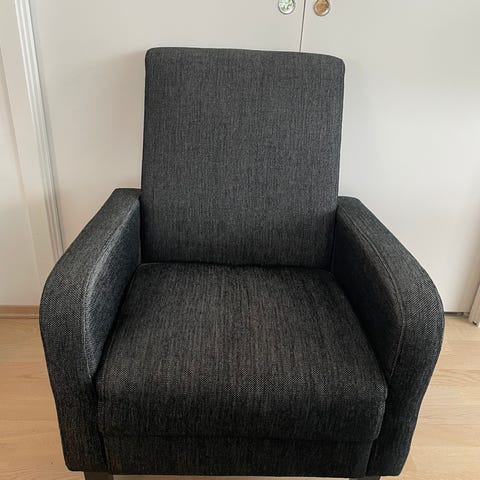 God lenestol inkludert puff selges grunnet for lite plass i min studentbolig. Stolen er trukket om til brunt fra grått.