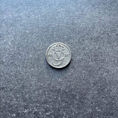 Norsk mynt 5 øre. 1945. Begge sider av mynten vises på bildene, med valørangivelse på den ene siden og motiv med riksløve på den andre. Egner seg som samleobjekt for myntsamlere eller som del av en samling av eldre norske mynter.