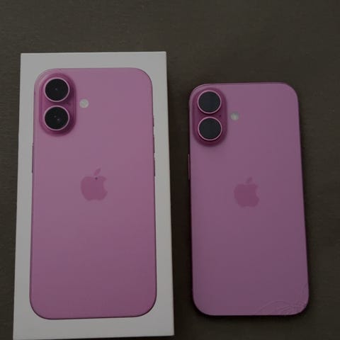 Apple iPhone 16 mobiltelefon med 128 GB lagringsplass i rosa farge.