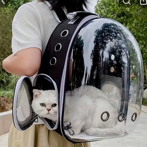 Flott sekk som gjør at man kan ha med pusen ut på tur. Utsikt og god lufting får den også. .