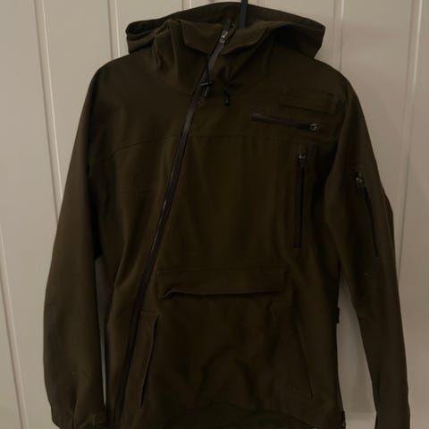 Norrøna Kvinnherad Gore-Tex størrelse L skalljakke i grønn farge. Lang modell med hette og høy krage for ekstra beskyttelse. Jakken har flere brystlommer med glidelås, håndlommer med glidelås og ermelomme. Justerbar hette, mansjetter og nederkant for bedre passform.