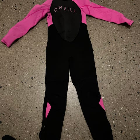 O’Neill Reactor våtdrakt for barn. Datert 13.12.2019. Drakten er i størrelse US/UK 6, oppgitt for høyde ca. 126–133 cm. Fargekombinasjon svart med blå ermer og blå detaljer. Våtdrakten har lang arm og lange ben, med glidelås bak og borrelåslukking i nakken. Egnet til bruk i vannaktiviteter som bading, surfing og andre vannsporter der det er behov for ekstra isolasjon og beskyttelse mot kaldt vann. Kan hentes i Son/Vestby, eller sendes forutsatt at kjøper betaler frakt. Har en helt lik drakt i svart og rosa til salgs her inne.