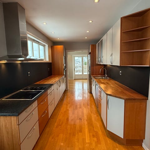 Fronten er i fin stand, hvitevarer følger med, men ikke vasken. Oppvaskmaskin fungerer ikke, men kan sikkert repareres.