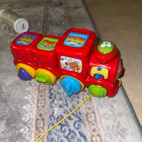 Selger leketog for barn å kjøre på da lillegutt (3år) begynner å bli litt stor for den. Egnet som ride-on eller skyve-leke for små barn. Toget kan settes i fri og trille for egen motor, eller kjøre på batteri på skinnene. Tempo på batteridrevet fremdrit oppleves som svært lavt for litt større barn og er ikke brukt slik i huset.