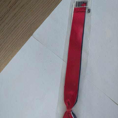 17. mai-sløyfen sløyfe i norske flaggfarger med små bjeller. Sløyfen er egnet som tilbehør til feiring av 17. mai og andre nasjonale markeringer. Produktet leveres i plastemballasje.