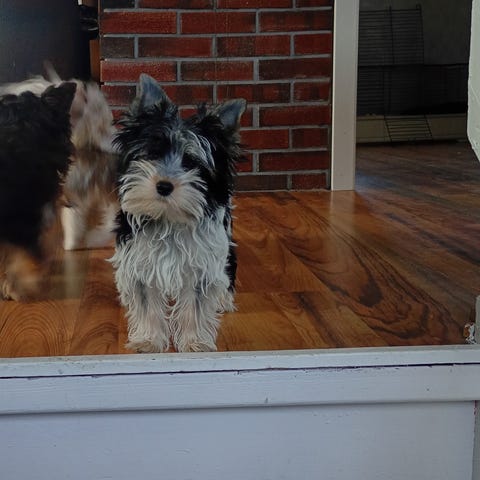 Chester vokser opp i en stue, omgitt av kjærlighet, kos, lydene av hjemmet og tilstedeværelsen av andre hunder.