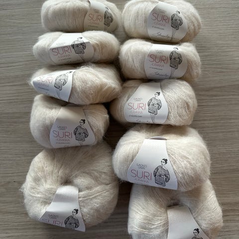 Fem hele nøster av 50 gram, totalt 250 gram.