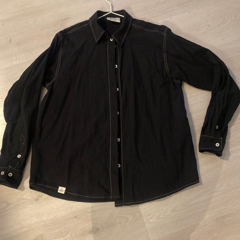 Skjorten er lang og er en storskjorte som er kult utenpå en bukse. Skjorten kan også være fin å bruke åpen med en t-shirt inni. Den er kun brukt 1 gang, så fremstår som ny.