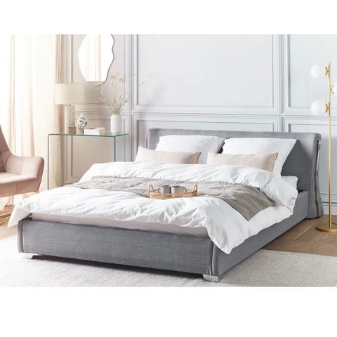 IKEA Gladhild madrass og seng i størrelse 160x200 cm. Madrassen har hvitt, vattert overtrekk med horisontale sømmer og lys grå sidekant. Egnet til standard sengestamme i samme størrelse. Passer som dobbelmadrass til soverom eller gjesterom, har grå sengegavl, samme som rammen. Den er allerede skrudd ned, så kan hentes sånn den er.