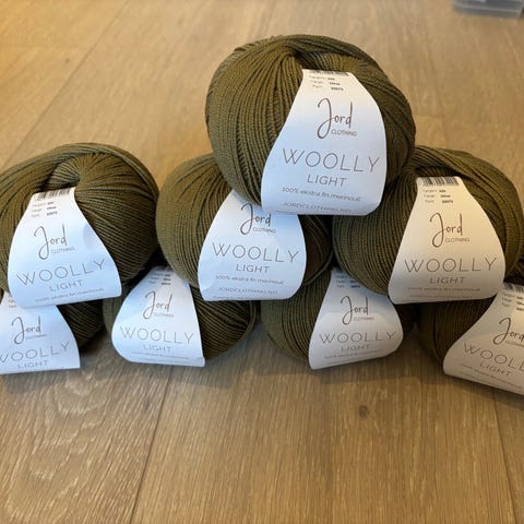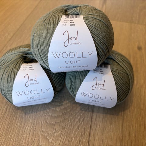 Jord Woolly Light og Tynn Silk Mohair garn i grønn farge. Nøstene passer til strikke- og hekleprosjekter som plagg og tilbehør. Woolly Light er et mykt garn som kan brukes alene eller sammen med Tynn Silk Mohair for ulike strukturer og uttrykk. Garnet egner seg til blant annet gensere, jakker, luer og skjerf, avhengig av anbefalt pinnetykkelse og strikkefasthet fra produsenten.