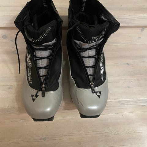Fischer XC langrennsstøvler i svart og grå farge. Støvlene har glidelås i front og overtrekk som dekker snøringen for å beskytte mot snø og fukt. Sålen er tilpasset klassisk langrenn med god gripeprofil for gange. Innvendig fôr gir varme og komfort. Egner seg til bruk med klassiske langrennsski, som for eksempel ski av typen Lillehammer Wax som vises på bildet.