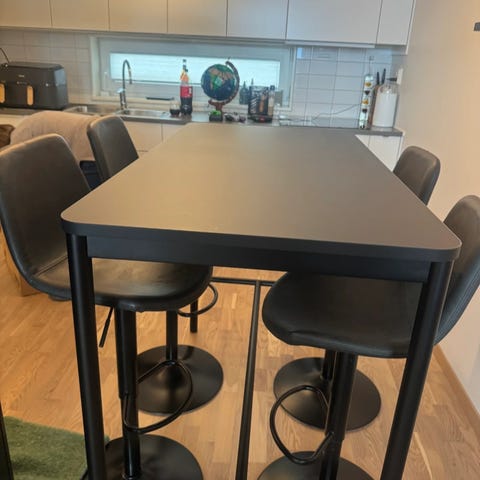 Pent brukt høyt bort med 2 stk høye barstoler fra A-møbler selges.