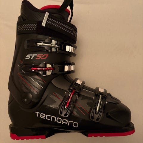 TecnoPro alpinstøvler i svart og hvit med oransje detaljer. Støvlene har fire justerbare spenner i metall og plast for god tilpasning rundt fot og legg. Ytterskall i hardplast gir støtte og kontroll ved alpinkjøring. Innerstøvel med polstring for komfort og varme. Egnet til bruk med vanlige alpinbindinger i skibakken.
