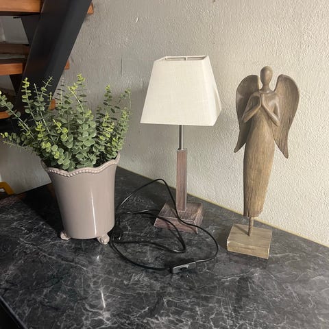 Dekorativ hjortefigur i stor størrelse 70 cm høy og 50 cm lang i brun fargetone. Figuren forestiller en stående hjort med gevir og er laget i et materiale som gir et stein- eller betonglignende uttrykk. Passer som innredningsdetalj i stue, gang eller andre oppholdsrom, og kan plasseres på gulv eller annen stabil flate innendørs.nypris 2300kr