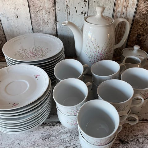 servise service sommerstemning retro vintage Þsttysk made in gdr samleobjekt samlerobjekt 80 90 tall stilisert naturmotiv mÄker himmel skyer 20 20 10. 15 10. 380 hylle