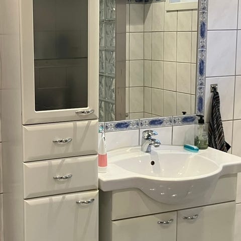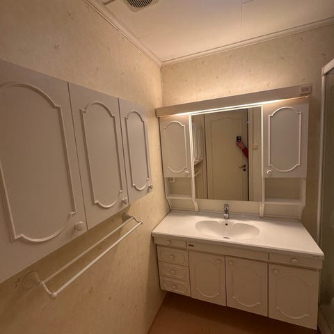 2 stk baderomsinnredning 90 cm og 120 cm bred, bestående av servantskap med heldekkende servant i hvit utførelse. Servantskapet har underskap med dører og oppbevaringsplass. Løse speil og skap på sidene med hyller på innsiden. Innredningen er egnet for montering på bad og gir både vaskeløsning og oppbevaringsmuligheter for baderomsartikler.