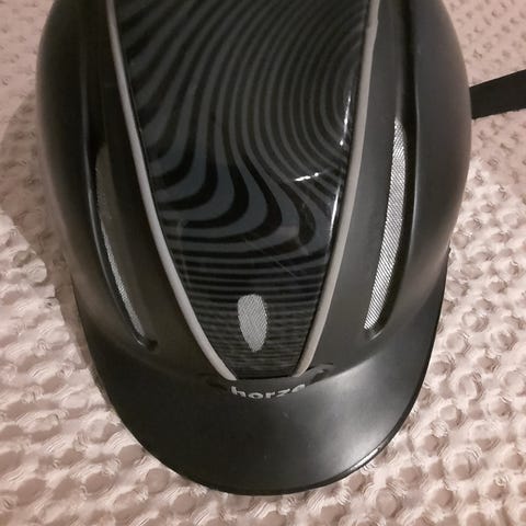 Horze Spirit ridehjelm i svart farge. Hjelmen har justerbar hakereim og polstret innside for økt komfort. Passer til ridning og annen hestesport der hodebeskyttelse er nødvendig. Modell og størrelse fremgår av merkelappen på innsiden av hjelmen. Regulerbar størrelse