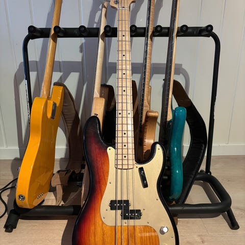 Pickupen er en single coil Lollar p-bass pickup. Originale potmeter, men nye ledninger. Bassen har lav action og er en utrolig lettspilt bass.