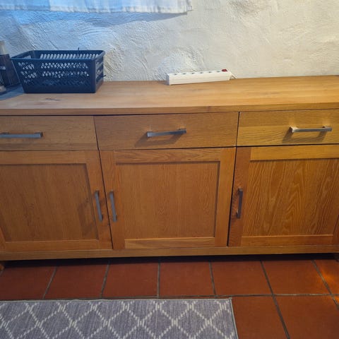 Pent brukt praktisk liten kommode med betongtopp og godt med lagringsplass selges.