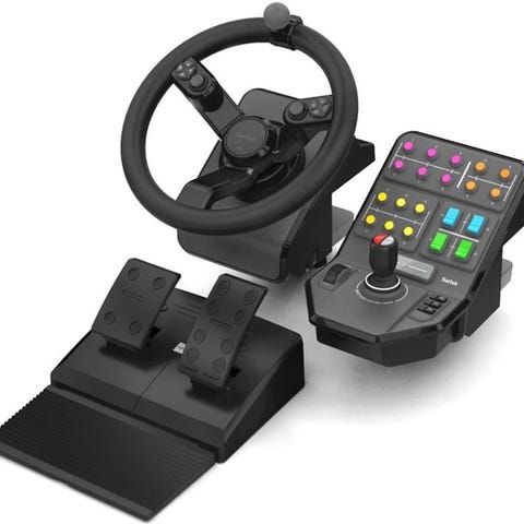Logitech G Saitek Farm Sim ratt- og pedalsett med kontrollpanel.