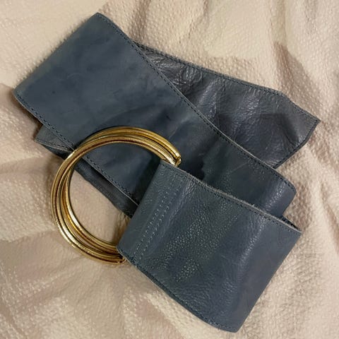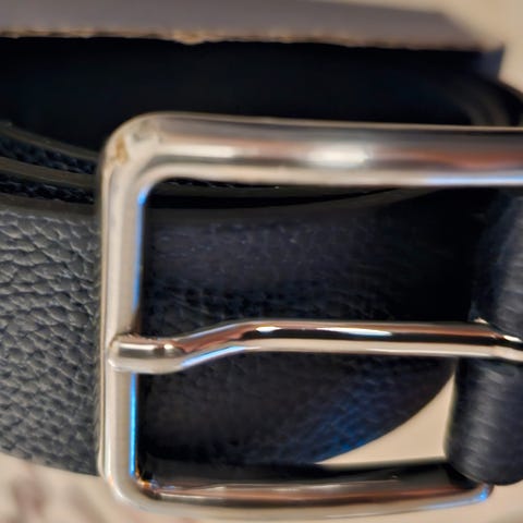 Belte i ekte skinn for dame i svart farge. Beltet har en rektangulær metallspenne dekorert med tett felte klare strass-steiner. Lengden som er merket på beltet er 90 cm. Passer til bruk i bukser, skjørt eller kjoler der man ønsker et markert belte med dekorativ spenne.
